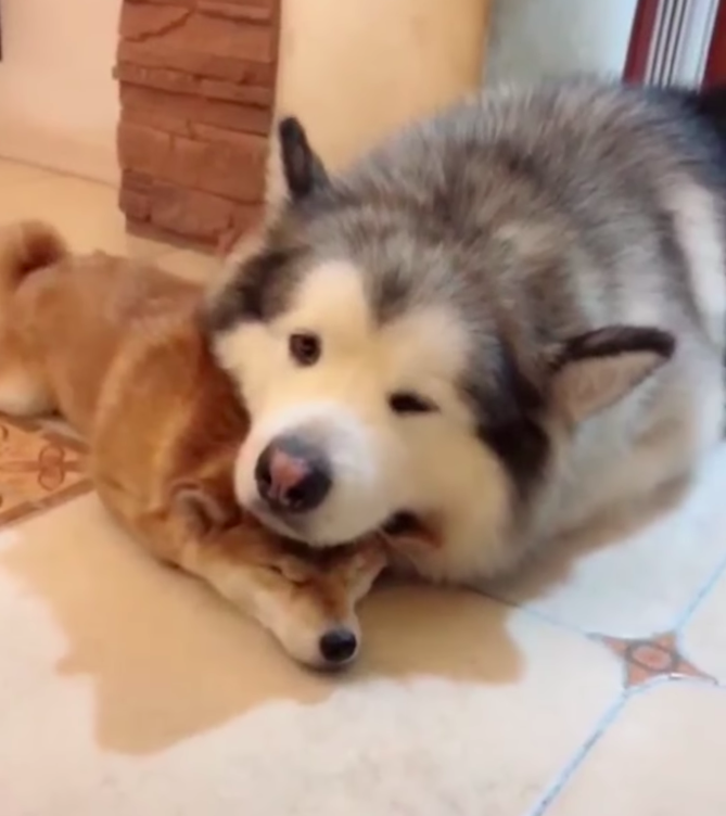2018年10月24日狗狗個性單純,對於喜歡的朋友,會直接表達愛意。下面這名網友家中有2隻狗狗,一只是阿拉斯加,另一只是柴柴。這兩隻狗狗感情很好,每天都膩在一起。但阿拉表達愛意的方式,讓柴柴有些吃不消。