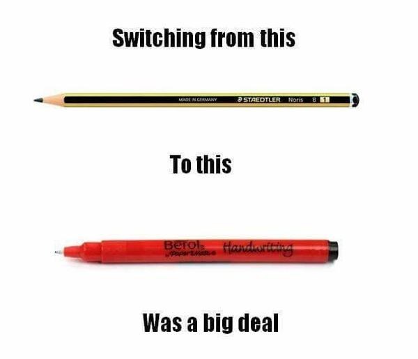 ▼從使用鉛筆到使用原子筆,對學生來說是長大的證明!