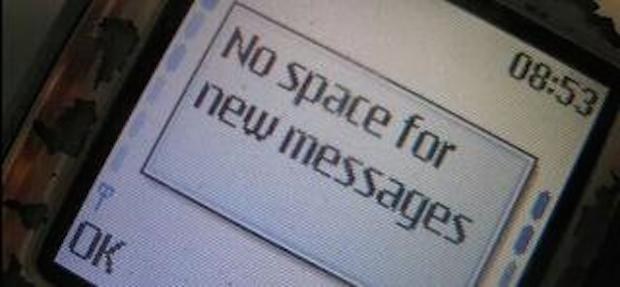 ▼必須刪除簡訊來騰出儲存空間。