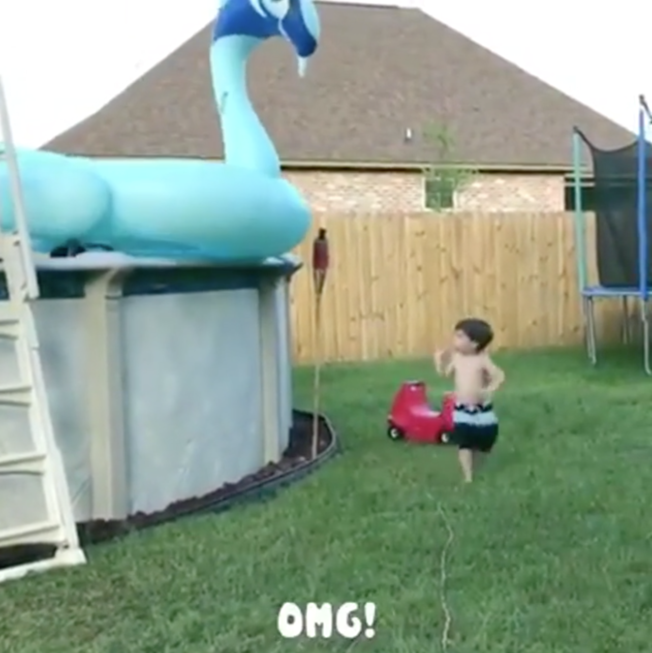 ▼小男孩以為看到怪獸,嚇到邊跑邊喊:「我的天啊~」