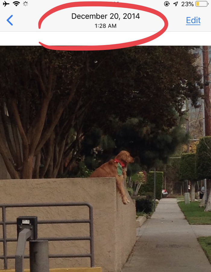 ▼早在2014年時,Riley就愛趴在牆上了:「牠那樣做好多年啦!我以前住附近的時候好喜歡牠~」