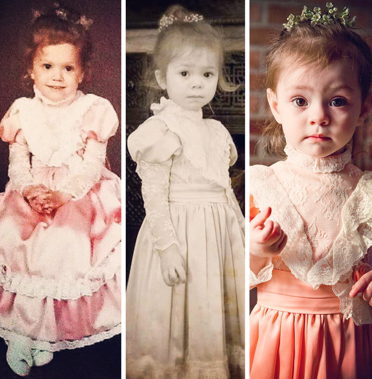 最後那位媽媽的基因真的太令人難以置信,兩個女兒完全跟她小時候長得一模一樣啊!不說還以為是同一個小女孩拍了3張不同的照片!基因真的充滿了各種奧秘,永遠都能夠創造出讓人感到驚奇的模樣!