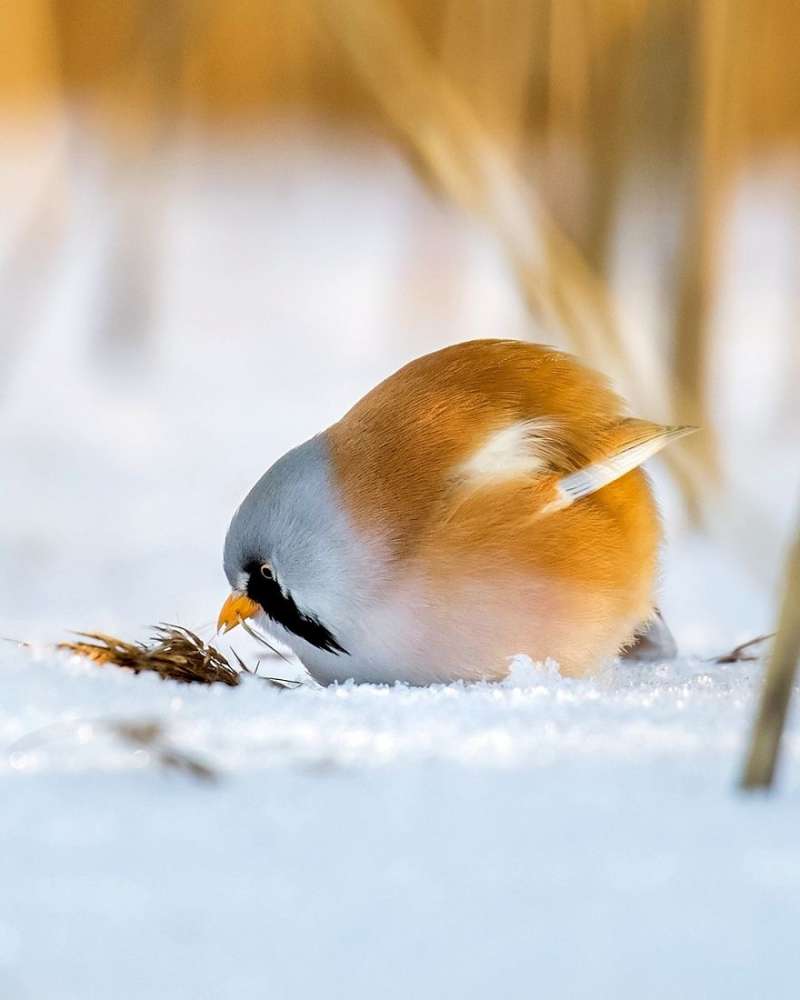 ▼13. 雪地襯托了鳥兒羽毛的美。