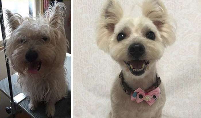▼在理完毛之後,這些狗狗也非常感激她呢!