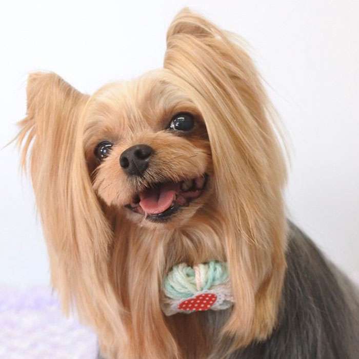 ▼有時她也會為狗狗戴上可愛的裝飾哦!