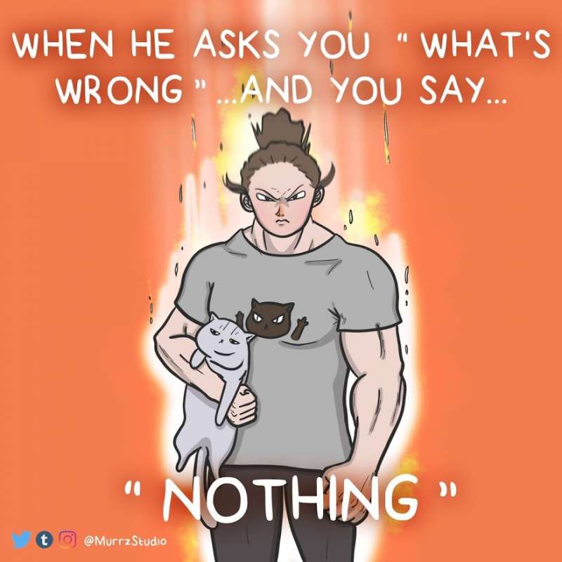 ▼15. 當男友問你「怎麼了」,妳回答「沒事」的時候。