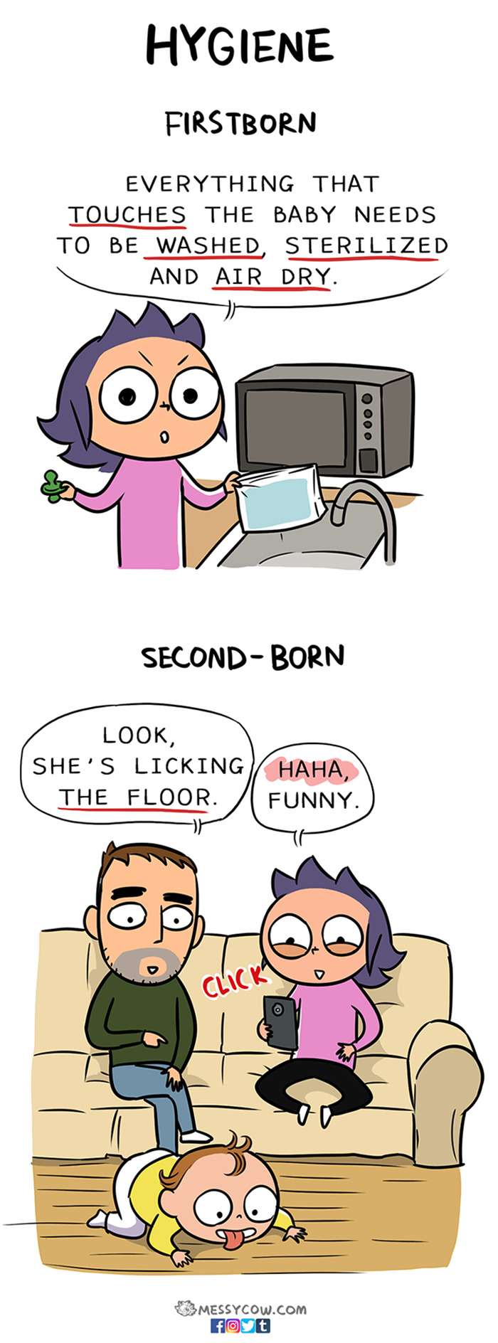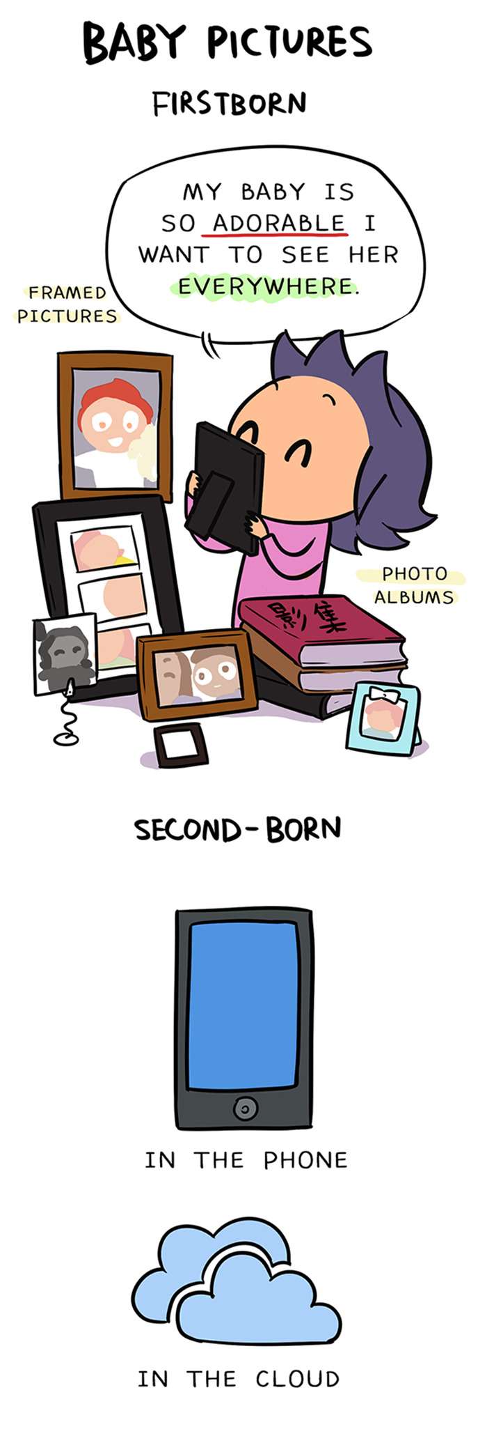 每個父母都經歷過這樣的時期,第一次懷孕和第二次懷孕的心情簡直是天差地遠,這也間接的影響了我們對於小孩的態度。一名居住在美國的華裔插畫師「Weng Chen」就畫了自己兩個女兒所受到的差別待遇,搞笑之餘也有一種現實的殘酷,各位是不是也跟她一樣呢?