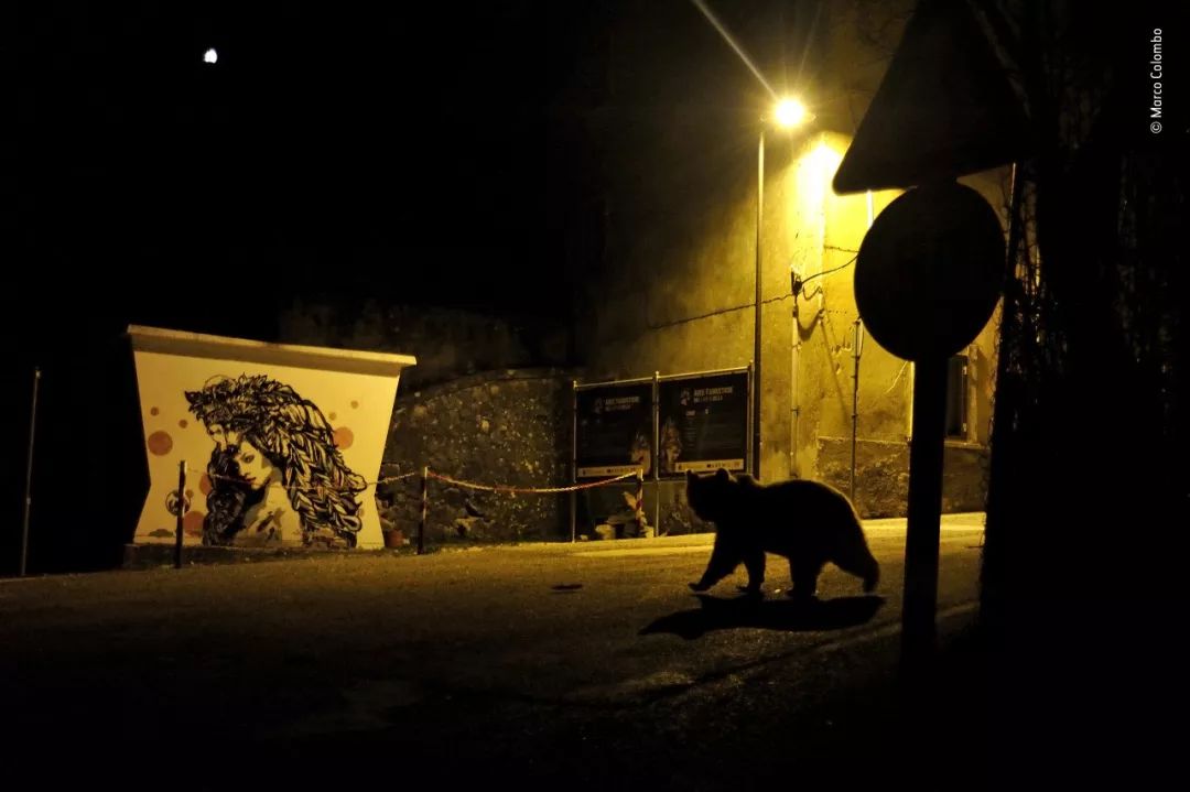 ▼「過馬路」(Crossing Paths) - 2018年度,城市野生動物類組別(Urban Wildlife)之得獎作品,由義大利攝影師「Marco Colombo」所拍攝。