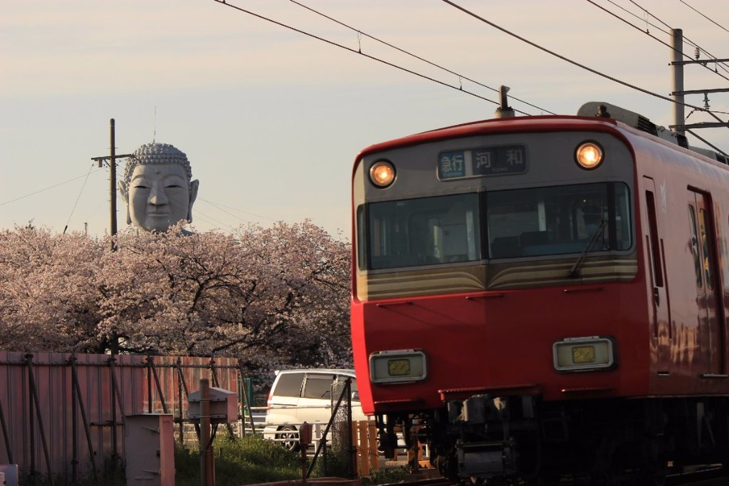 ▼愛知縣布袋大佛附近的櫻花已經開滿,網友跑去欣賞。
