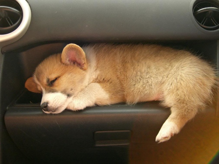 ▼Q:「比一隻柯基睡覺時還要可愛的畫面是什麼?」、A:「五隻柯基一起睡覺。」