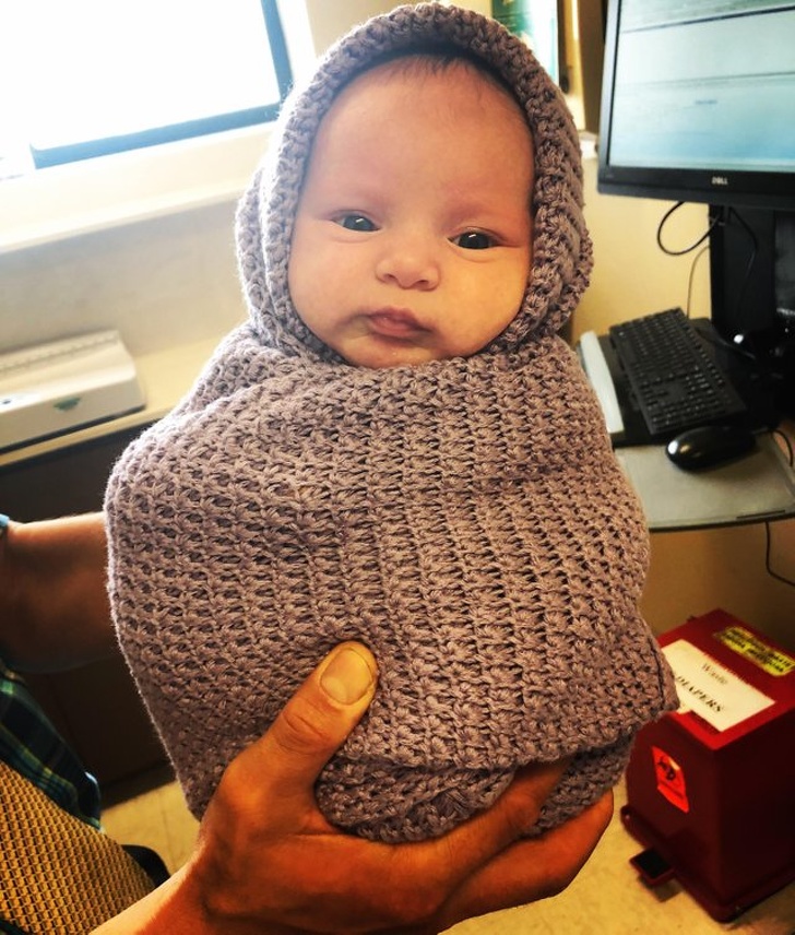 ▼「我帶女兒去做檢查,兒科醫生把她包得萌萌的。」