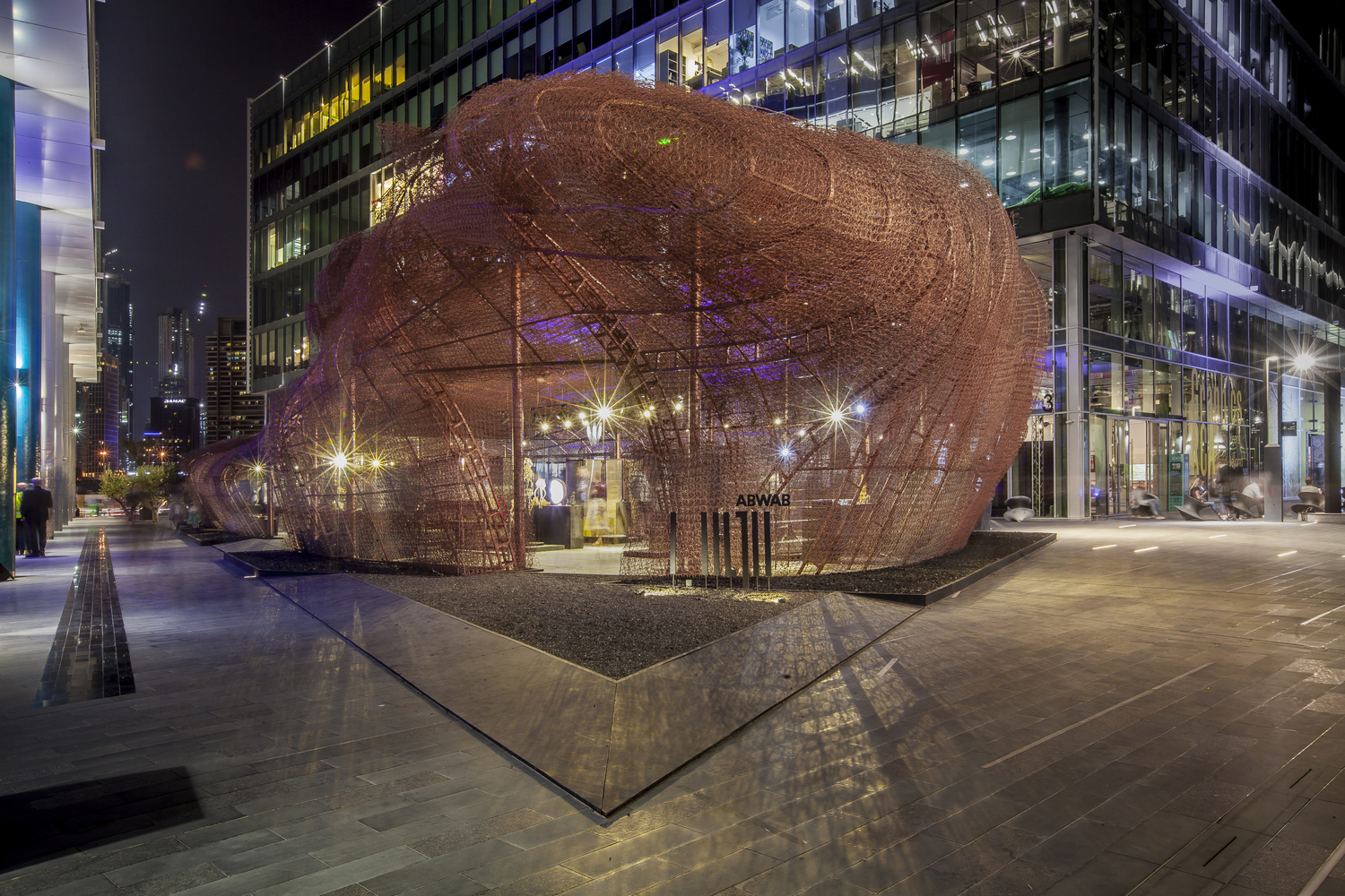 展館使用了廢棄的床墊彈簧,彈簧構成的網狀物創造了獨特又奇幻的建築。