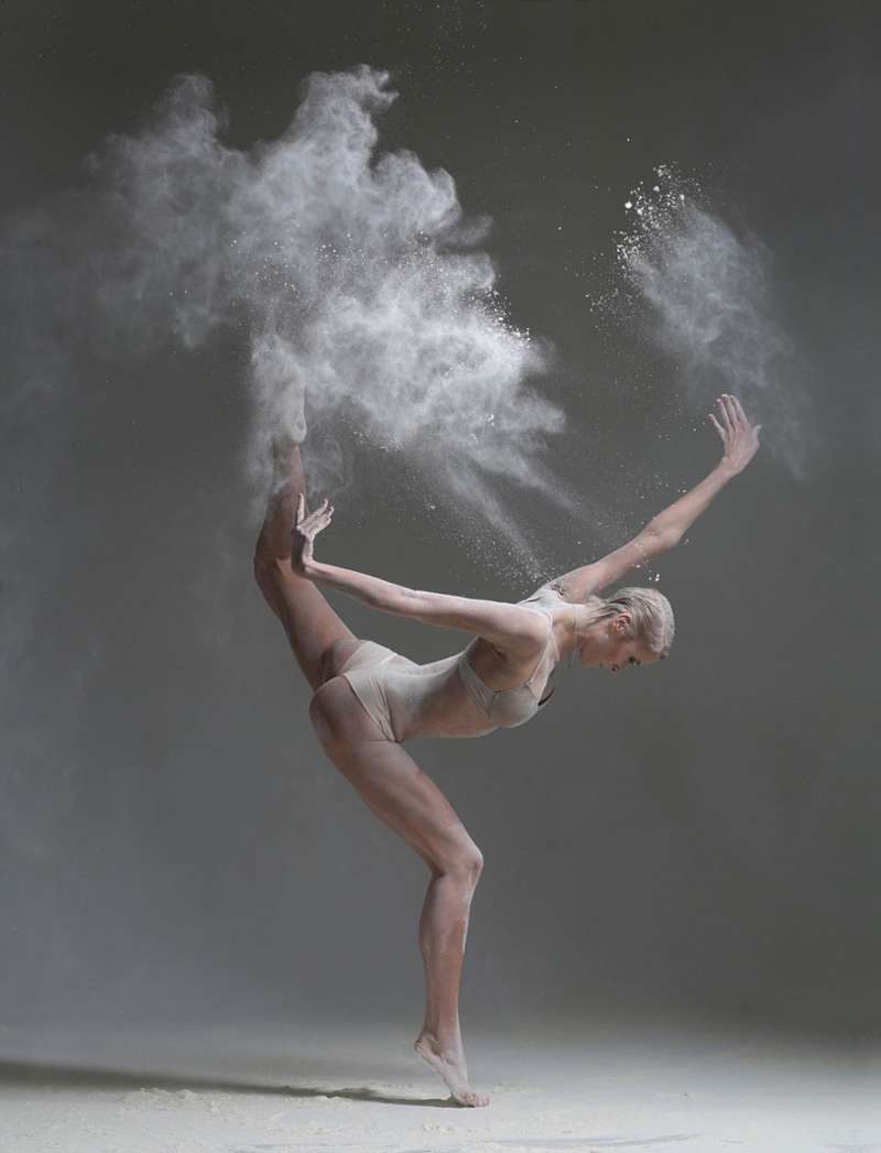 攝影師亞歷山大巧妙地藉助麵粉記錄了舞者充滿爆發力的動作瞬間,雖然照片記錄的是某一瞬間,但是我們卻很容易就聯想到舞者那些充滿著力量的動作。甚至我們看過這些照片之後也都想要站起來,來上一段這樣的舞蹈呢!