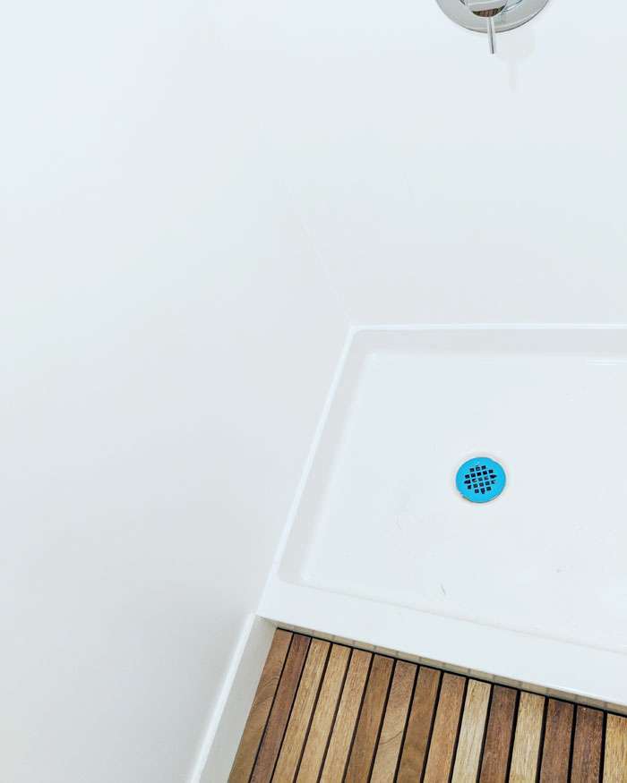 ▼來看看浴室的部分,木質地板可以讓濺出來的水快速排乾,其他的水則會透過排水管流到巴士下方安裝的污水箱。