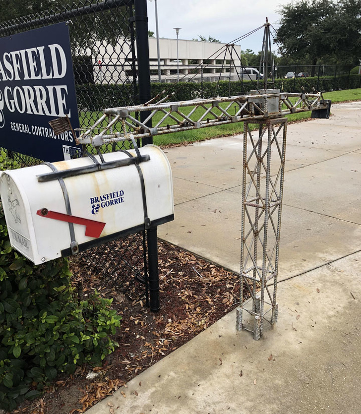▼建築公司外的信箱,看起來就像小型起重機。