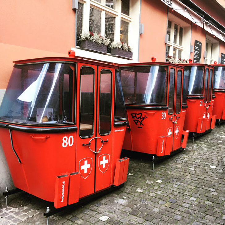 ▼這間餐廳把一個個纜車吊艙變成了桌子。