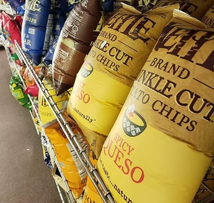 ▼1.海拔2267公尺的賣場,架上的薯片長這樣!打開一看應該會想哭吧?