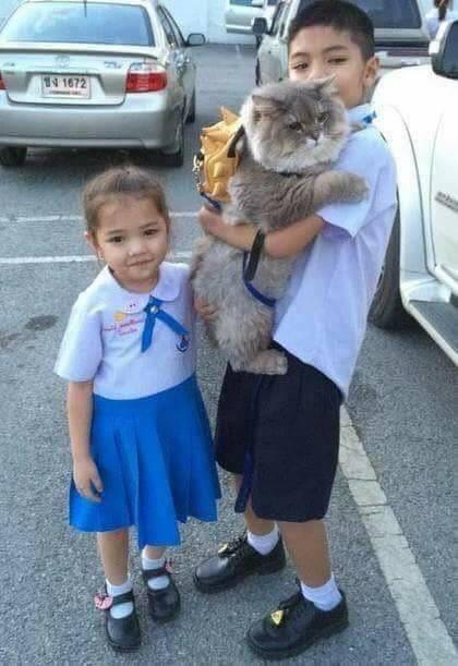 ▼牠也背上了小書包,要和哥哥姐姐一起去上學嗎?