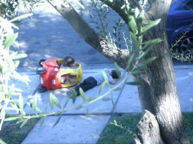 ▼22. 熊孩子在警車裡鳴笛,嚇到自己了。