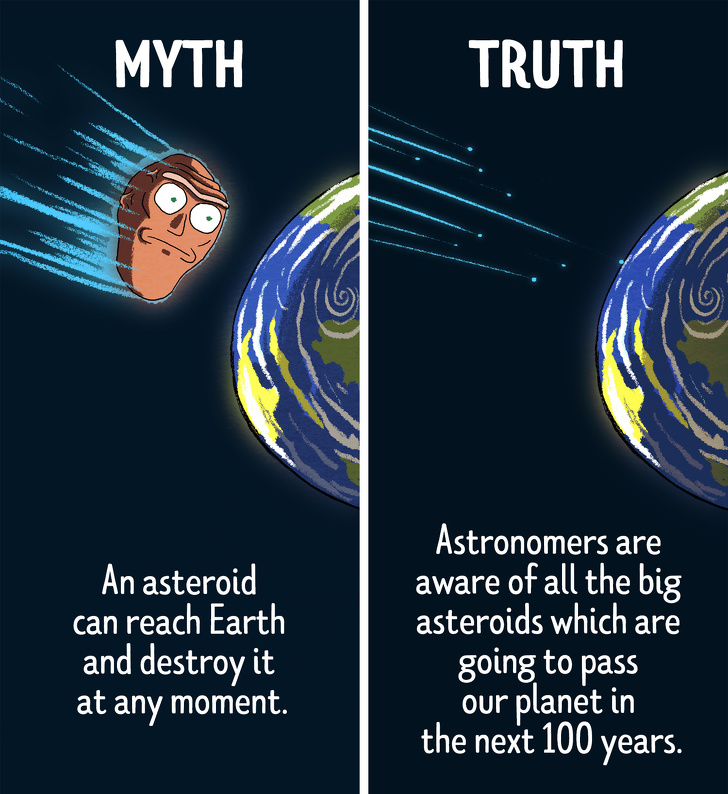 不要被災難電影嚇到了,天文學家早就知道在接下來的100年裡將會通過地球附近的所有大型小行星,而不是像電影演的,說來就來。