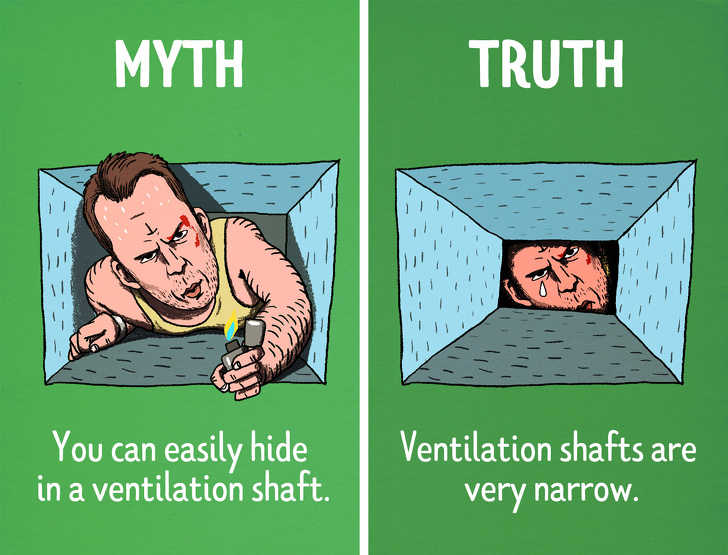 2018年11月03日好萊塢電影總是有很多令人驚喜的橋段,但是你可知道很多電影裡演的,跟現實世界根本不一樣嗎?從通風口逃跑、爆炸還可以慢慢的走開,這一切都只是編劇和導演的無窮想像力有關,回到現實才會發現真相。下面12個超級誤導的知識,你傻傻地相信了多少呢?
