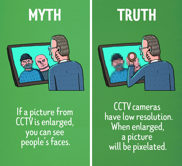 真實世界裡的監視器畫面根本不可能這樣子。電影裡的主角總是可以隨便就放大,清清楚楚地看到目標的臉,但是我們回到現實世界,看到的監視器影片都非常模糊啊。