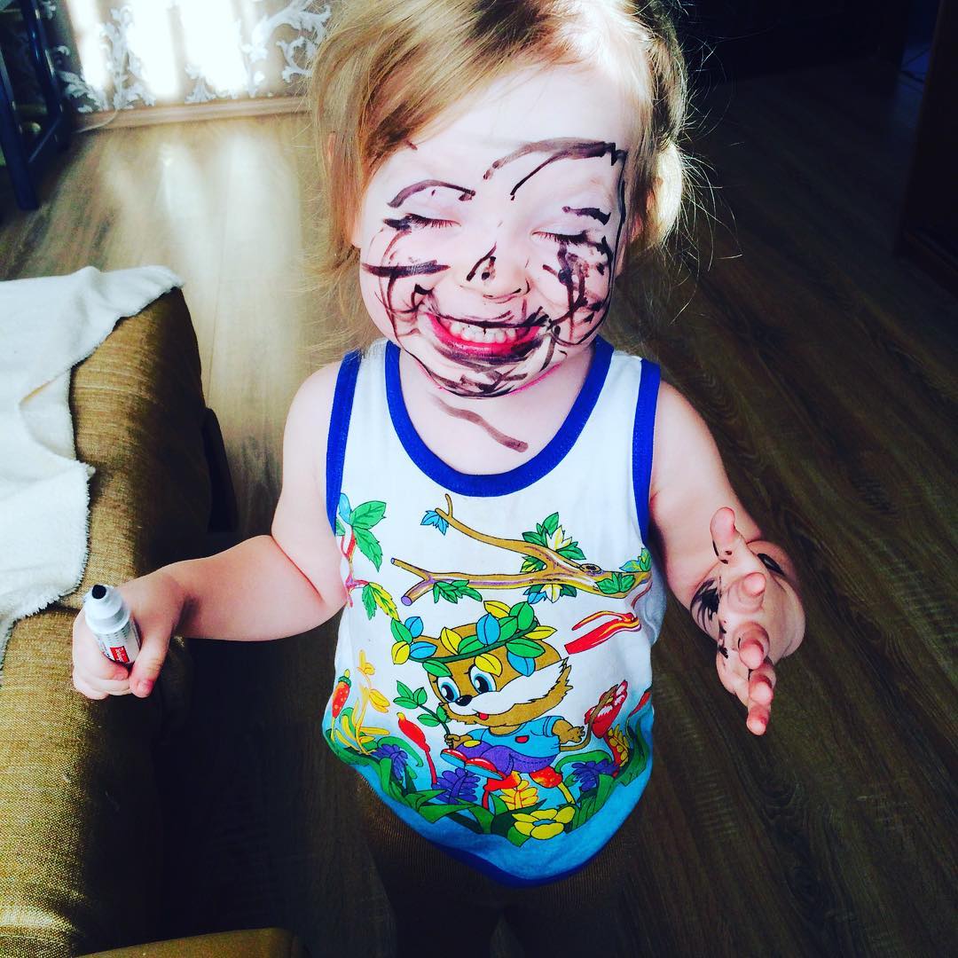 ▼要不是媽媽回來得早,她能把全身都塗藍。