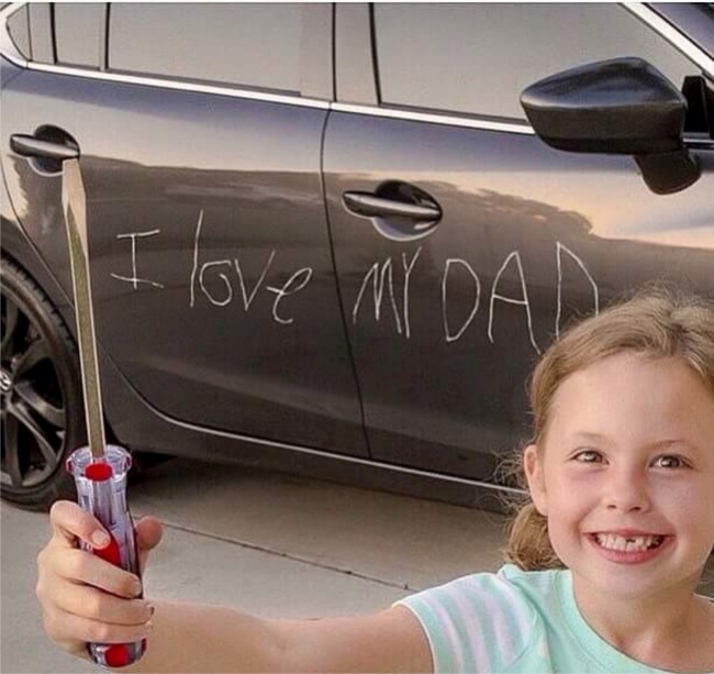 ▼看到車上的「我愛我爸爸」劃痕,爸爸流下了苦澀又欣慰的淚水。