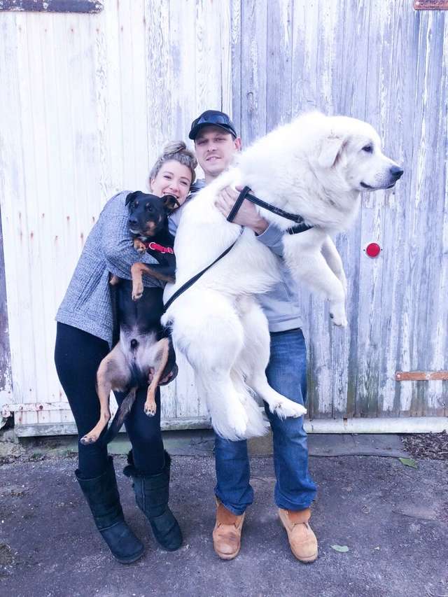 ▼但就在今年一月,凱蒂和她的男友決定大膽放手一搏試試看!他們果斷地前往了賓夕法尼亞州(Pennsylvania),打算參加一場寵物博覽會。在現場,他們的目光馬上就被深深地吸引了!原來是當地的流浪動物救援組織「Salfid Rescue」,正嘗試著要替11隻大白熊犬,分別尋找一個溫暖又有愛的新家。