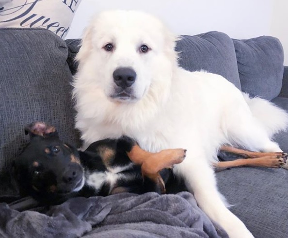 ▼就這樣輾轉來回看了幾次,最後他們終於決定,要把在這11隻大白熊犬裡,體型最大、毛也最蓬的那個小傢伙給帶回家,並幫牠取名為「Beau」。原以為可能會相當排斥新成員的塔克,沒想到在Beau的正式到來後,竟展現出了不可思議、像個大哥哥般的溫柔舉動。