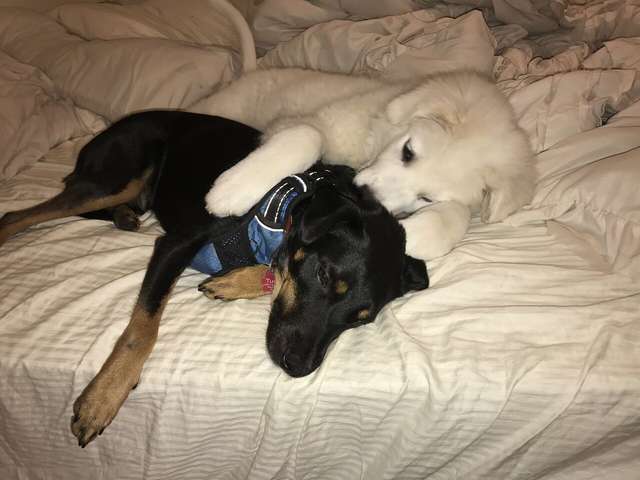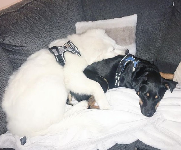 2狗會吵架嗎? 新來的「大白熊弟弟」超黏哥哥 天天要抱著睡:最喜翻你惹