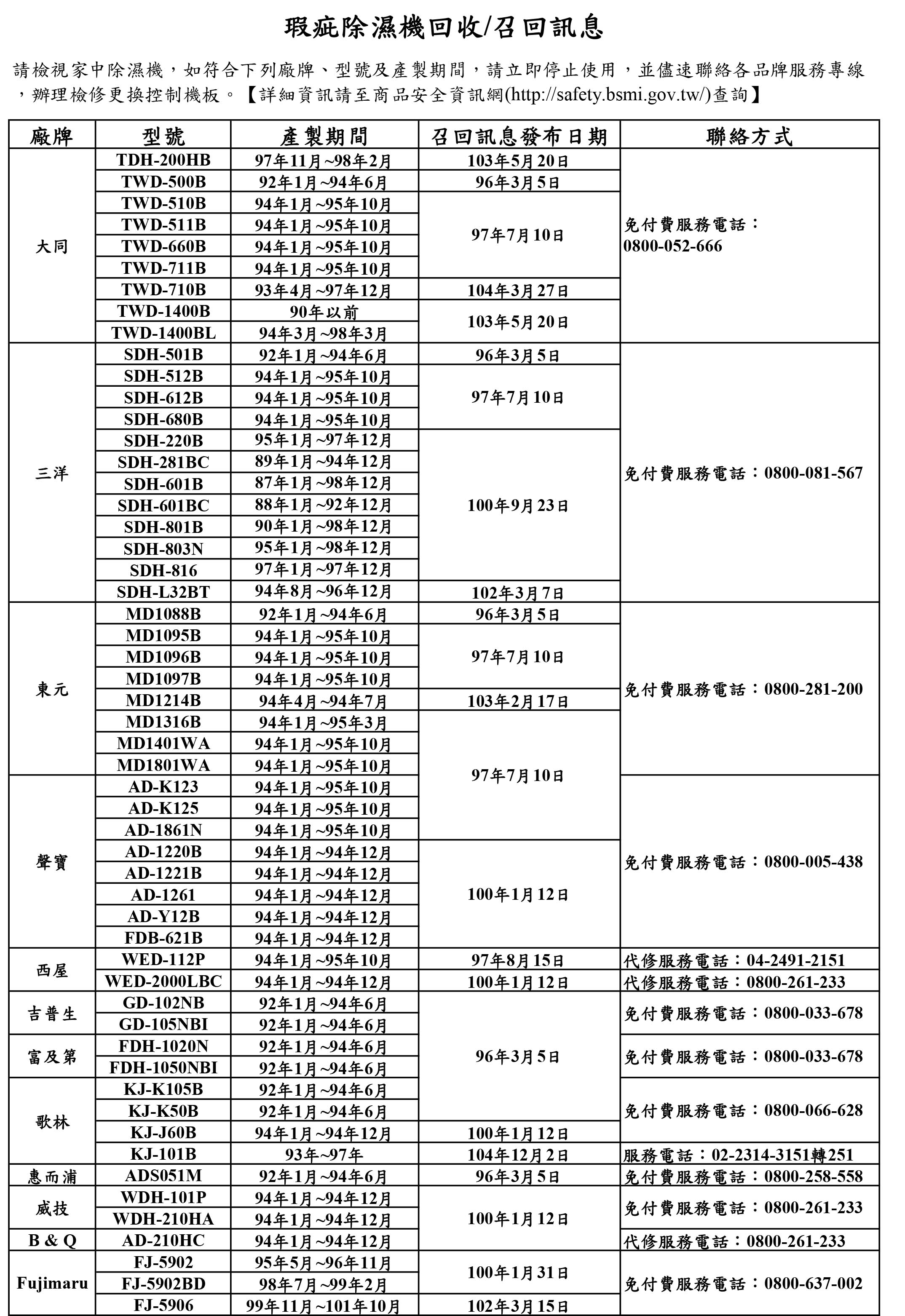 2018年11月07日潮濕的季節又來了,很多人用上了除濕機。但挑選除濕機學問很大,買到不合格的除濕機就危險了。近日花蓮接連發生了2起因除濕機引發的火警,消防局火調人員勘驗現場發現,2起除濕機自燃的機種,都是經濟部標檢局公告,要召回檢修的型號。