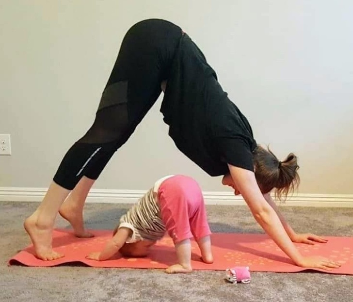 ▼小孩主動模仿媽媽的瑜伽姿勢!
