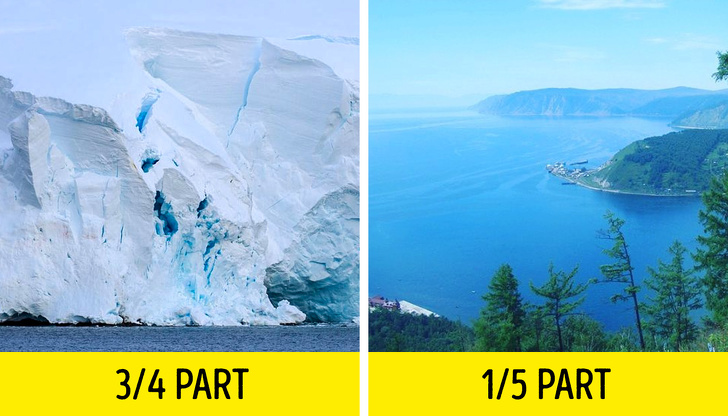 ▼​冰川是地球上最大的水庫:地球上大約10%的土地被冰覆蓋。冰川超過580萬平方英里。 這10%儲存了世界上約75%的淡水。如果只考慮未凍結的淡水,位於俄羅斯的貝加爾湖含有世界上最多的淡水,大約有20%。