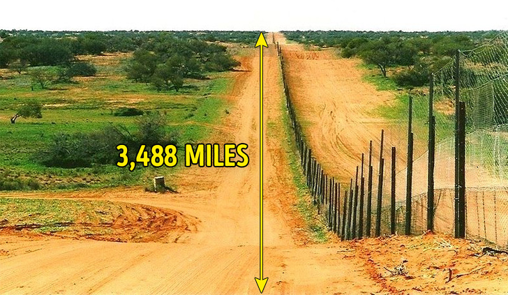 ▼​澳洲野犬柵欄比中俄邊界還長:19世紀,牧羊業是澳洲經濟的重要組成部分。因為野狗太多,19世紀80年代,農場決定建造一個可以保護綿羊群的圍欄。 這個柵欄長3,488英里,而中俄邊境長2,615.5英里。