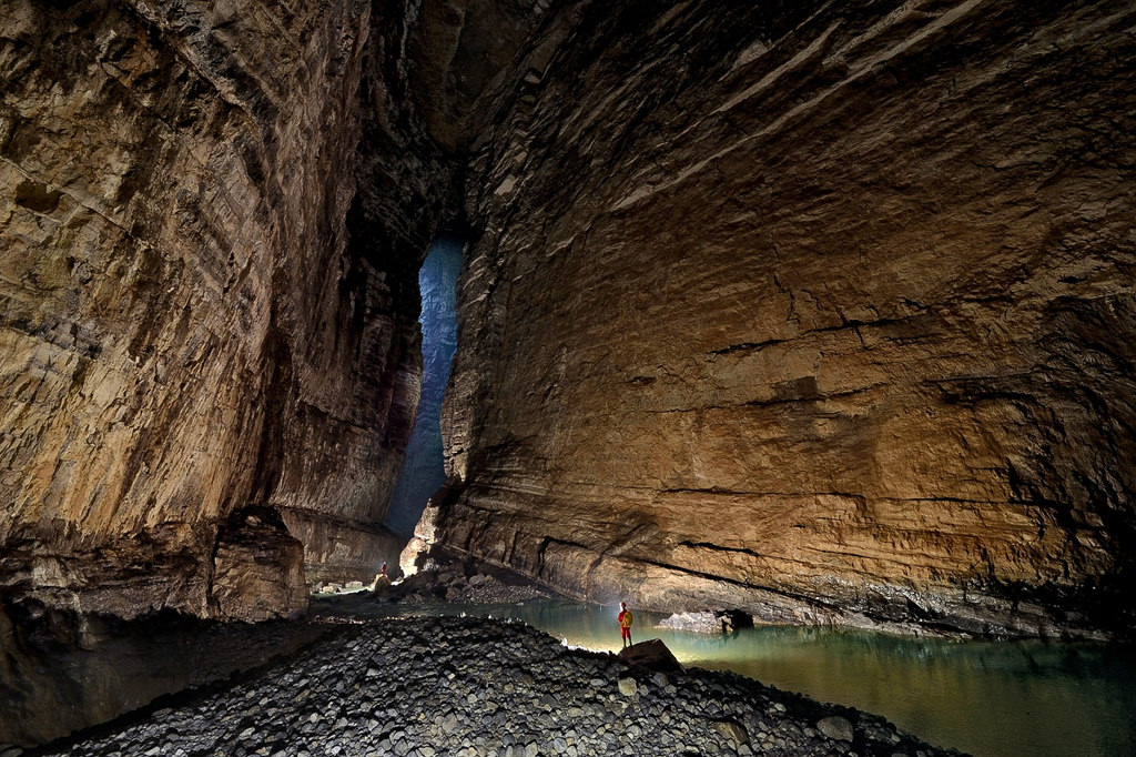 ▼​越南的韓松洞深度大約為500英尺,面有一條河流,某些地區下雨的話會洪水氾濫,裡面還有植物和樹木。
