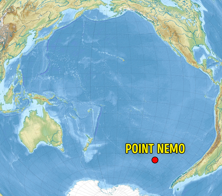 ▼​界上最難抵達的地方是「尼莫點」:「尼莫」一詞來自拉丁語的「Nemo」,直譯為「無人」,正式名稱為「海洋難抵極」,是地球表面距離陸地最偏遠的地點。這個點孤離於陸域、船舶航線及洋流之外,所處海域的人類活動與其他生物蹤跡稀少。距離當地最近的人類,竟然是身在地球之外400公里高處的太空站人員,各國航太機構把這個地方稱之「南太平洋無人居住區」,並作為太空載具停用後的墜落地點,避免殘骸傷及人類。