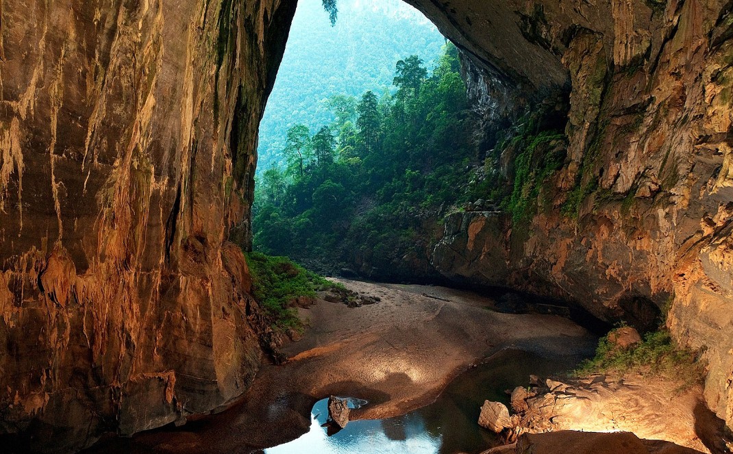 ▼​中國的「二王洞」與越南的「韓松洞」大到有自己的氣候變化:二王洞的通道長138,251英尺,擁有自己的氣候與植物。當地人通常會透過觀察洞穴來預測天氣。 如果裡面有霧,外面就會下雨。