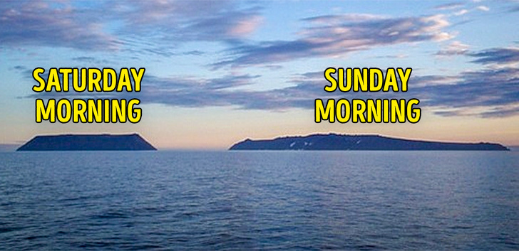 ▼​迪奧梅德群島距離國際邊境2.4英里,相隔21小時: 這些島嶼位於白令海峽中部。西部的Ratmanov島屬於俄羅斯,東部的Krusenstern島屬於美國。這些島嶼被國際邊界線與國際日期線分開,時間自然不同。當美國時間是星期六上午6點時,俄羅斯島上則是星期日上午9點。