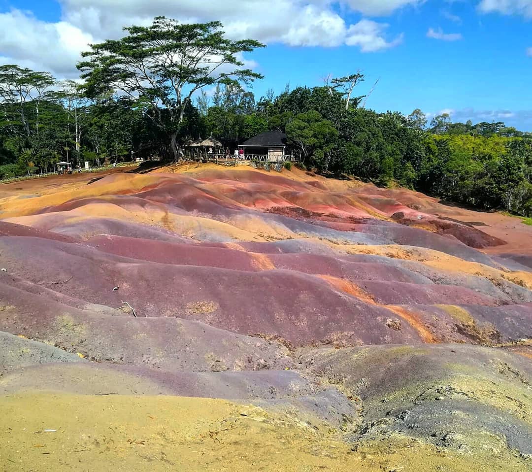 ▼​毛里求斯的一片沙丘有7種不同顏色的沙子:在這裡可以看到紅色、棕色、紫色、綠色、藍色、紫色與黃色的傻子。這些沙子都沉澱在不同的沙層中。