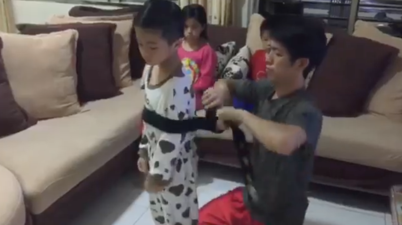 2018年11月07日發現欺負小兒子的人,竟然是大兒子,你會有什麼樣的反應?馬來西亞一名爸爸Paul Lee就決定要把大兒子綁起來,然後在女兒和小兒子面前直接教育!這段影片上傳後,引起了許多的網友討論,有的人表示爸爸對孩子負責任,也有人質疑為什麼要拍影片。