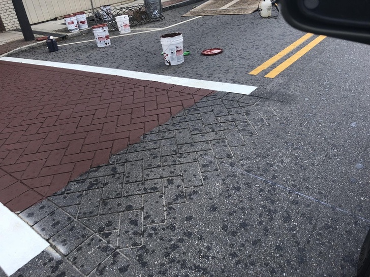 ▼10.市政府經費有限,於是他們就想到用「畫的」做出地磚!