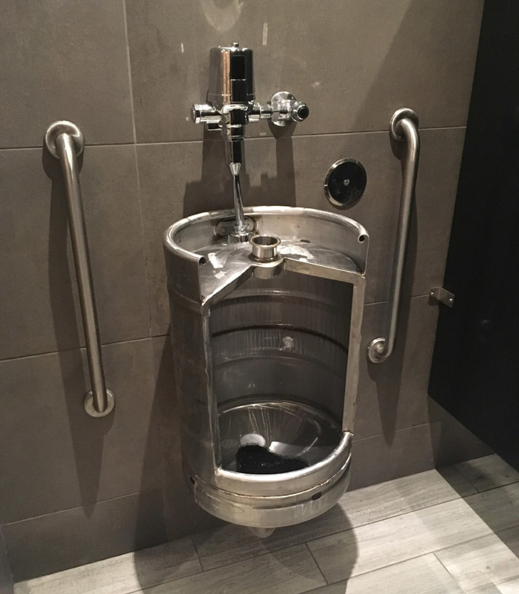 ▼22. 環保的極致!用過的鐵桶變成小便斗。