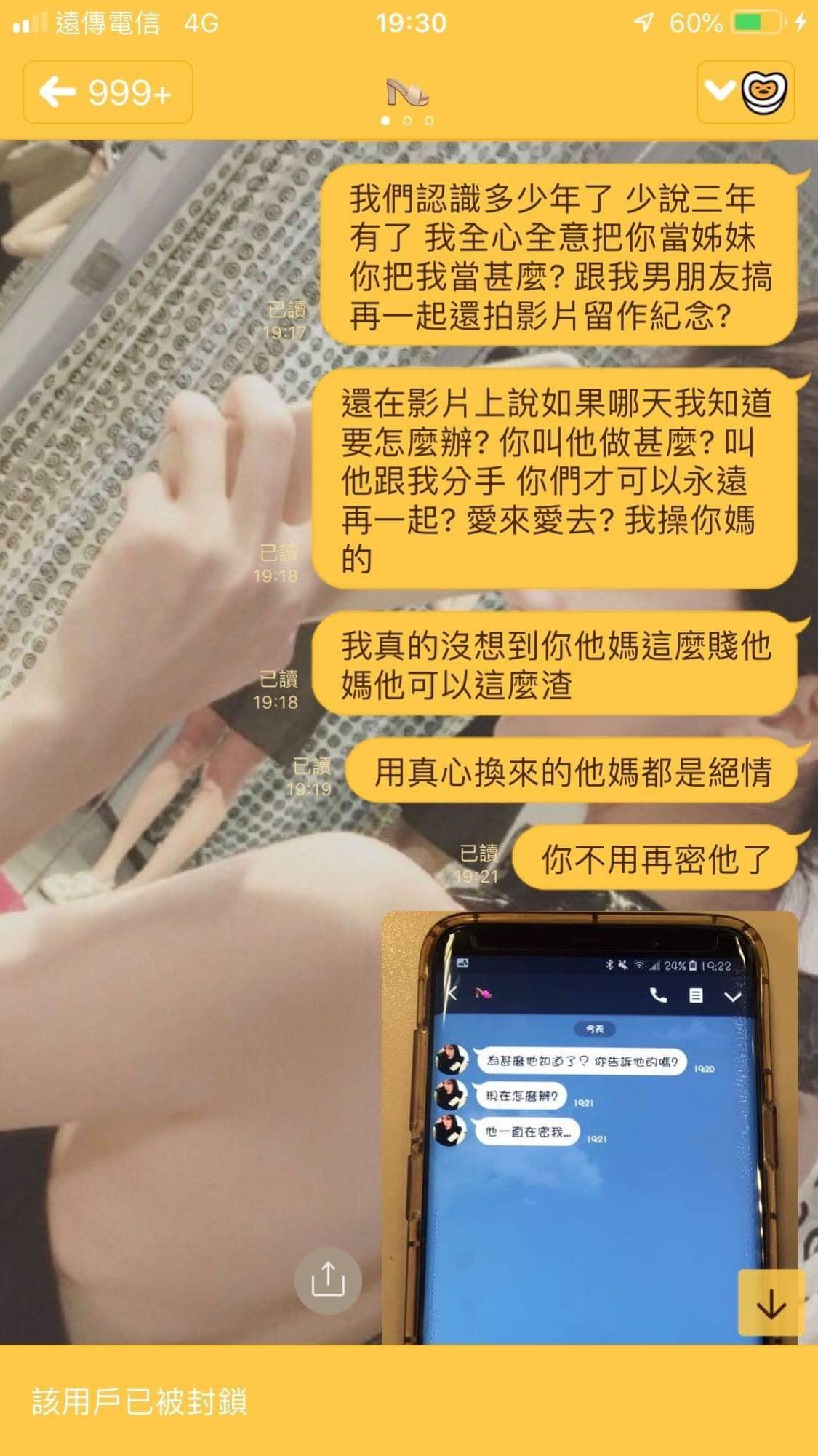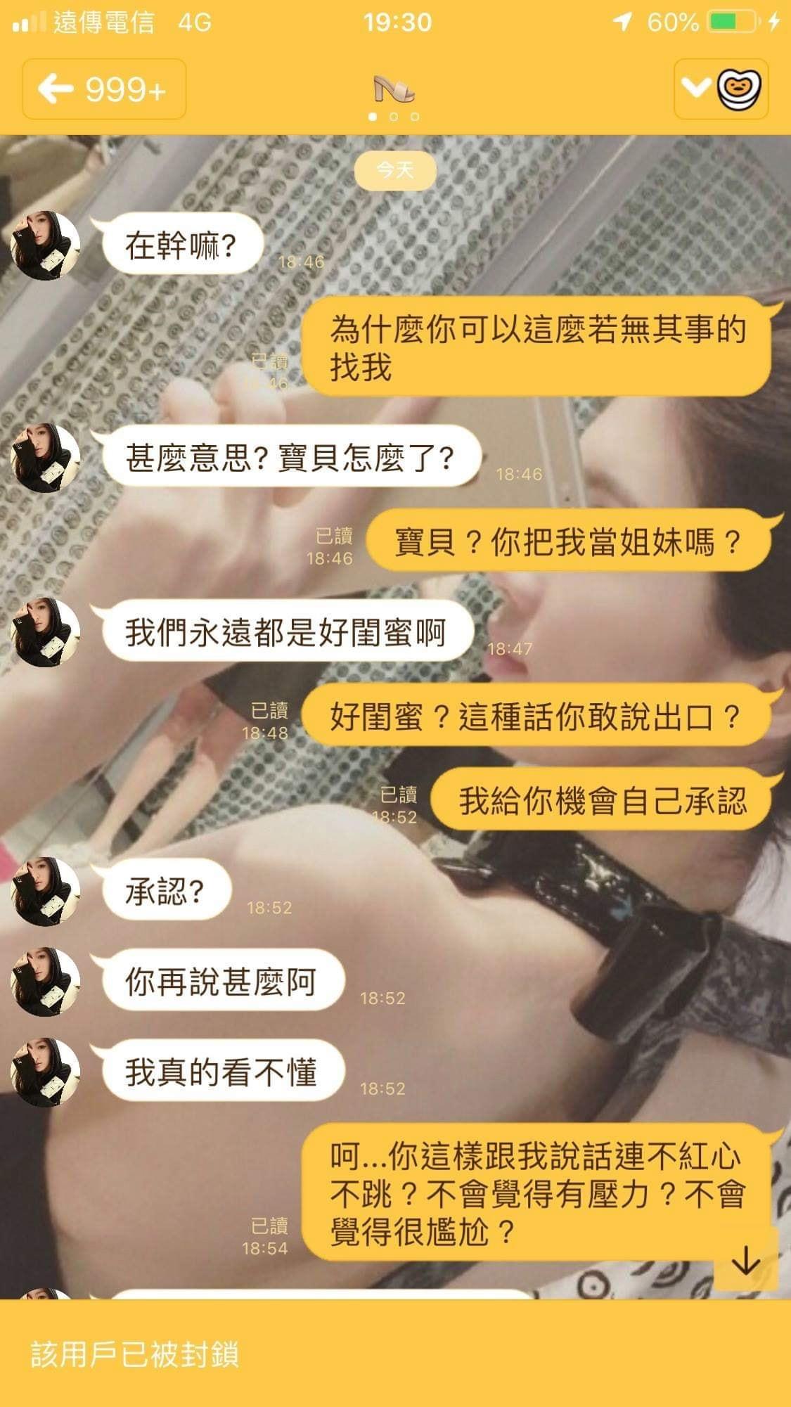 ▼女網友發現自己被男友、閨蜜背叛,氣到當場分手,並line質問好姐妹。剛開始閨蜜裝作不知道,還一口一個「寶貝」,叫得很親密。