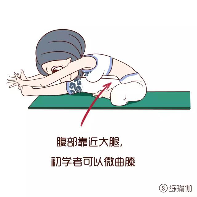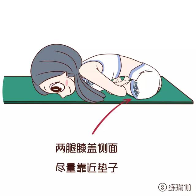 ▼英雄式前屈變式:跪立在瑜伽墊上,雙腳併攏大腳趾相靠,臀部坐在腳後跟上,吸氣,雙膝打開略大於髖部。再次吸氣時,手臂舉過頭頂,向上延展脊柱,然後,呼氣,手臂帶動軀幹慢慢向前向下。胸部盡量靠近墊子,下巴靠在墊子上,雙手向前方伸展,臀部不要離開腳後跟,保持4-6個深緩呼吸。