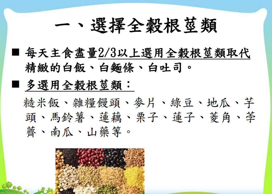 ▼那麼該從那裡開始呢?首先全穀類一定要吃,也要多進食有高膳食纖維的食物,那些精緻加工的澱粉類,白飯、麵食等能避開就不要吃。反而像是全麥麵包,五穀米就非常建議多吃,這些食物除了控制體重,還可以降低胰島素的敏感度。但是要提醒的是,腸胃功能不太好的人可以從一點一點吃開始,不要一開始就攝取太多,避免造成腸胃負擔。