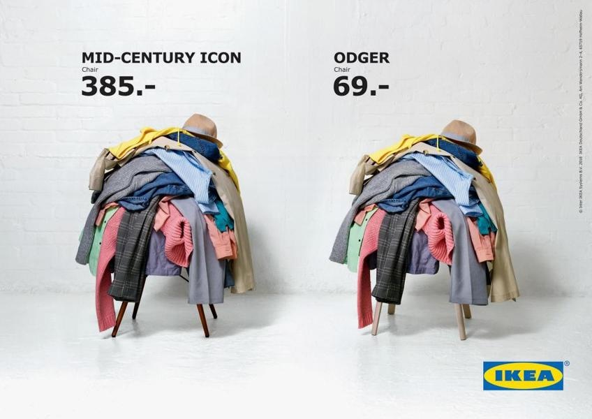 ▼這些廣告想要表達的概念是:反正看不到椅子,不如買一張便宜的吧。IKEA的Odger、Tobias和Svenbertil椅子,都很適合用來放衣服呢(大誤)。