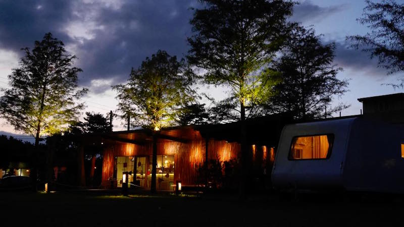 ▼每台露營車旁邊都有一處室外空間,這個平台擁有遮陽的屋頂,坐在屋外欣賞風景實在是人生一大樂事。