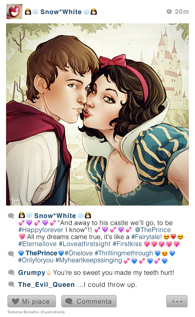 2018年11月12日在IG上發照片已經成為了很多人的習慣。如果迪士尼成員也有了IG帳號,結果會變成什麼樣?義大利插畫家Simona Bonafini就把自己的想法畫了下來,一起看看他們的日常吧。