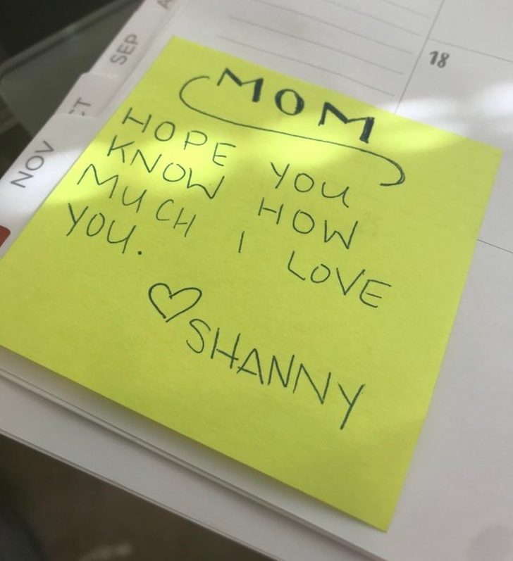 ▼今年24歲的女兒從另一個州過來看我,她離開2天後我發現了這張紙條:「媽媽,希望你知道我有多愛你。」